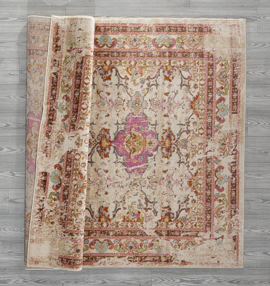 One of our most popular designs due to its modern twist on a traditional Oriental design, this Multi-Colored Distressed Modern Bohemian Area Rug combines a unique blend of beige, burn orange, taupe, and a touch of pink for a gorgeously stunning Bohemian vibe. No need to purchase a rug pad with this design - its high-quality manufacturing ensures a soft and no-slip product that offers minimal shedding.Â